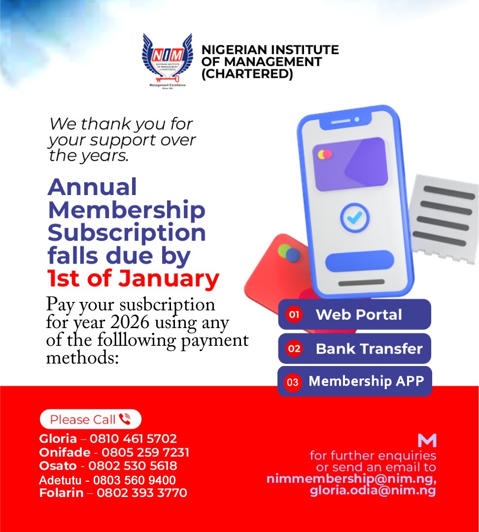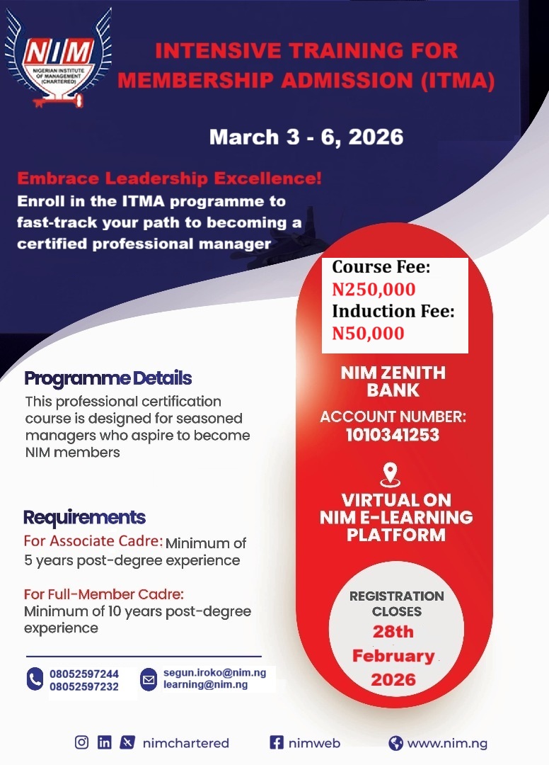 The Nigerian Institute of Management (Chartered) is pleased to announce a call for applications into the Fellowship Cadre. This is a prestigious opportunity for professionals with exceptional leadership, managerial, and governance skills to join our distinguished community.